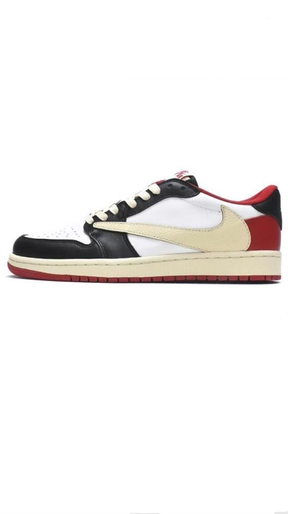 حذاء ترافيس سكوت إكس إير جوردان 1 لو - شيكاغو بولز يأتي بتصميم مستوحى من اللونين الأحمر والأسود الشهيرين لفريق NBA شيكاغو بولز (Chicago Bulls). يتميز الحذاء بجزء علوي مصنوع من مزيج متناغم من الألوان الأحمر والأسود، مما يعطيه مظهرًا جذابًا وجريئًا. يحتوي الحذاء على تفاصيل مميزة مثل شعار ترافيس سكوت وشعار Air Jordan على اللسان والكعب.