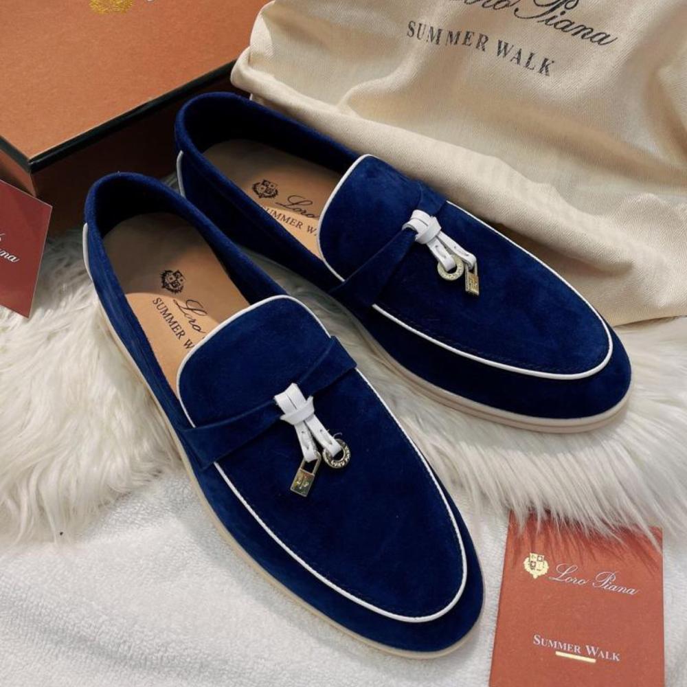 حذاء موكاسين رياضي مصنوع من الجلد الناعم والمريح للغاية. النعل مصنوعة من المطاط وهو سمة مشتركة تميز جميع أحذية لورو بيانا الرياضية. يتزين الحذاء بشريط صغير على الجهة الأمامية مزود بدلايات "My Charms" المصغرة. يُعد اختيارًا مثاليًّا للعطلات الصيفية على القارب، أو على الشاطئ، أو حتى في المدينة.